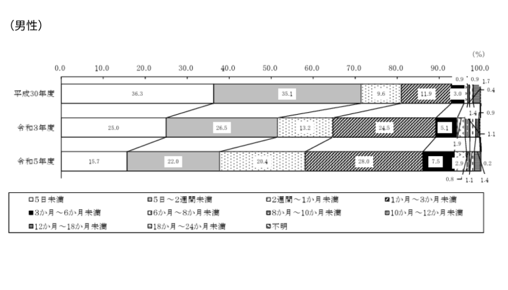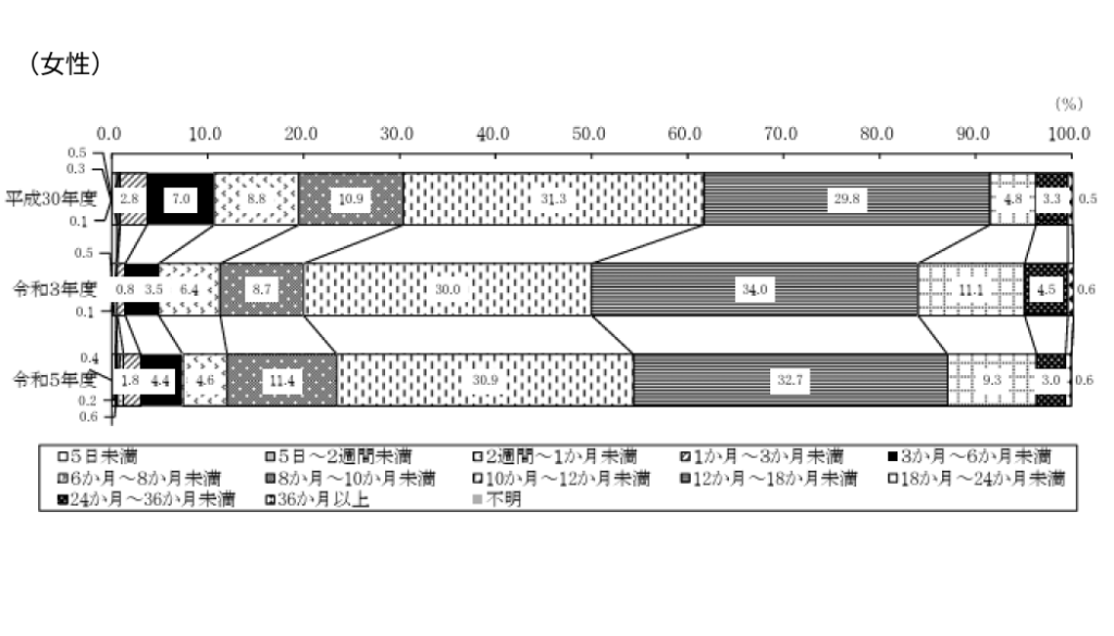 男女別、取得期間別育児休業後復職者割合 *令和5年度雇用均等基本調査/厚生労働省